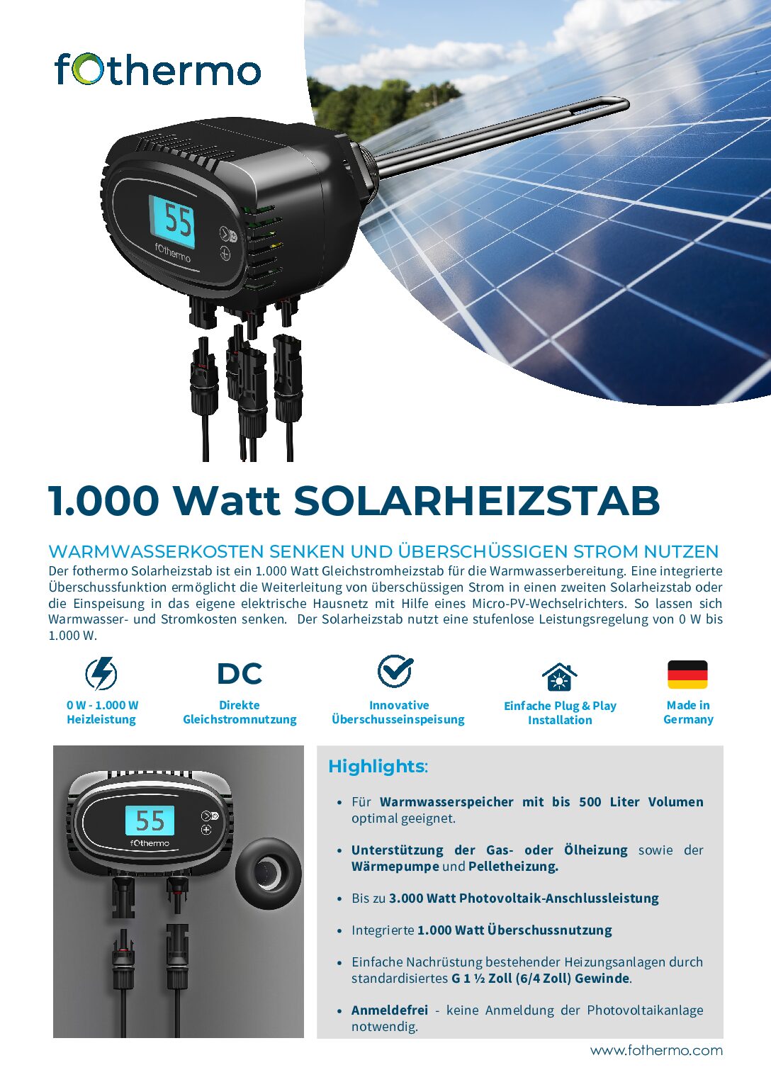 Option 2: 1.000 Watt Solarheizstab mit Überschusseinspeisung